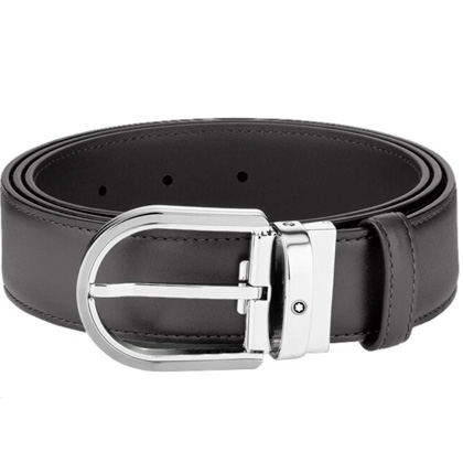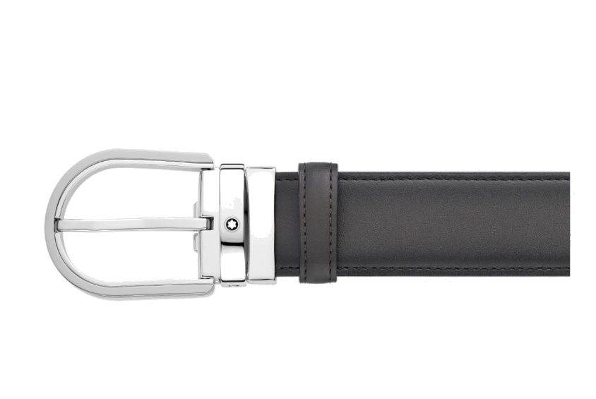 Кожаный ремень с пряжкой в форме подковы серого цвета 35 мм от магазина премиальных ручек Premium Pens в Шахтах.